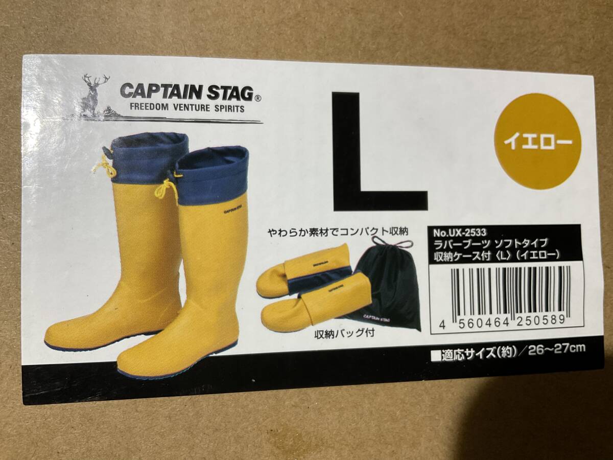 - キャプテンスタッグ ラバーブーツ ソフトタイプ 収納 ケース 付 イエロー Lサイズ