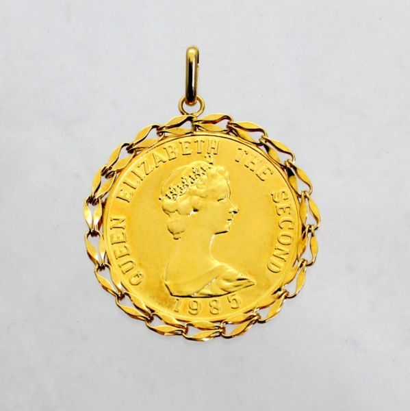 18金製のペンダントです。 両面にそれぞれコイン風のデザインが施されています。