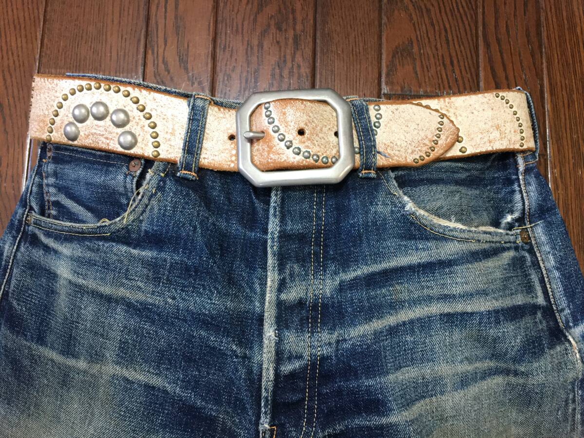 > USA製 ジェフガレア ベルツ JEFF GALLEA BELTS スタッズ レザー ベルト S 白 ホワイト ハンドクラフト アメリカ製