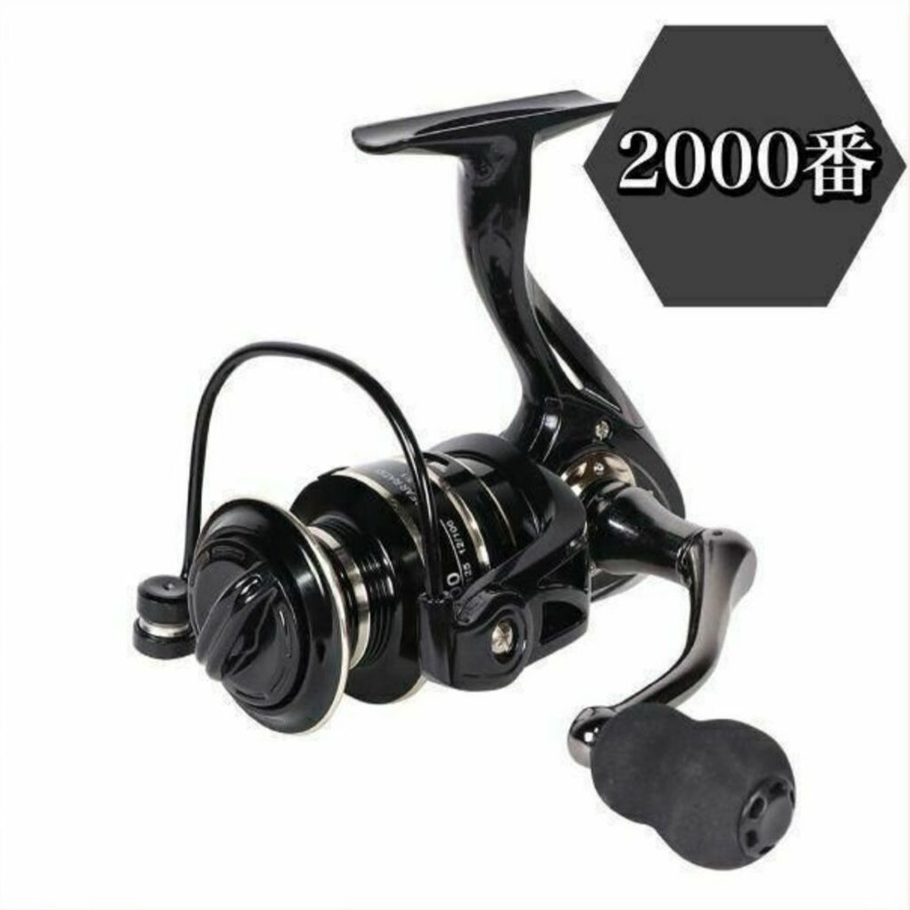 - スピニングリール 2000 黒 左右交換可能 海釣り ブラックバス レッド ブラック 小型 堤防釣り 伊豆