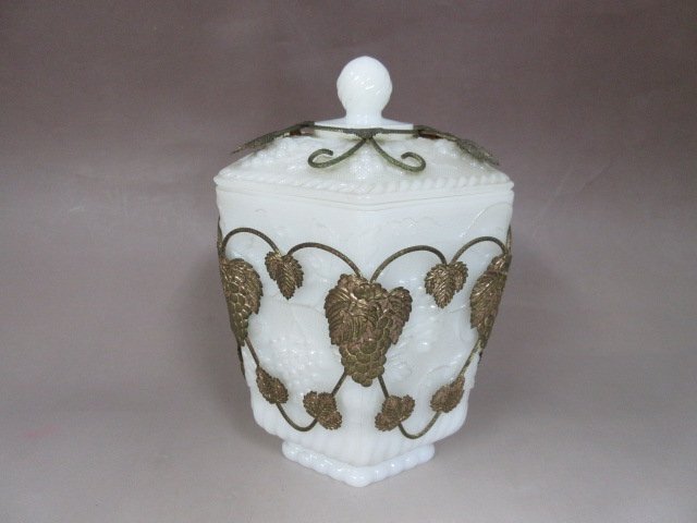> ファイヤーキング Fire King 6角キャンディーポット ぶどう柄 小物入れ アンティーク 高さ約23cm 中古 送料無料!