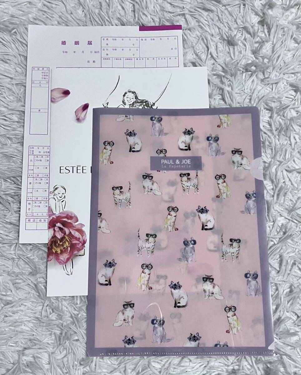 > ポール&ジョー ネコ柄 クリアファイル エスティーローダー 婚姻届 ピンクの婚姻届 (婚姻届2枚)ゼクシィ付録 猫 ねこ