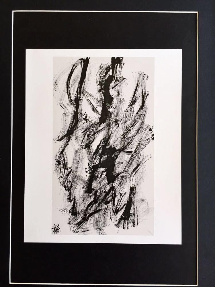 > 【篠田桃紅】絵柄84種展開 墨象画「1956前」印刷物 抽象画 墨 書道 Toko Shinoda 木製額装サイズ44.1×33.8cm 絵柄&サイズ違い有り
