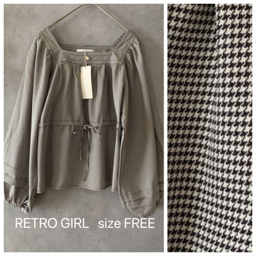 - 【新品未使用】RETRO GIRL 千鳥チェック柄ブラウス 夏以外 ボリューム袖