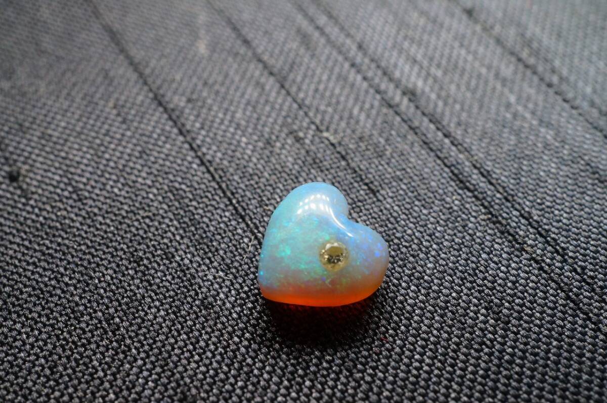 > 【即決特別価格!早い者勝ち】昔の未使用在庫!!希少!ハイグレード【ナチュラルオパール】ハートルース【ダイヤ2ピース】裸石極上品