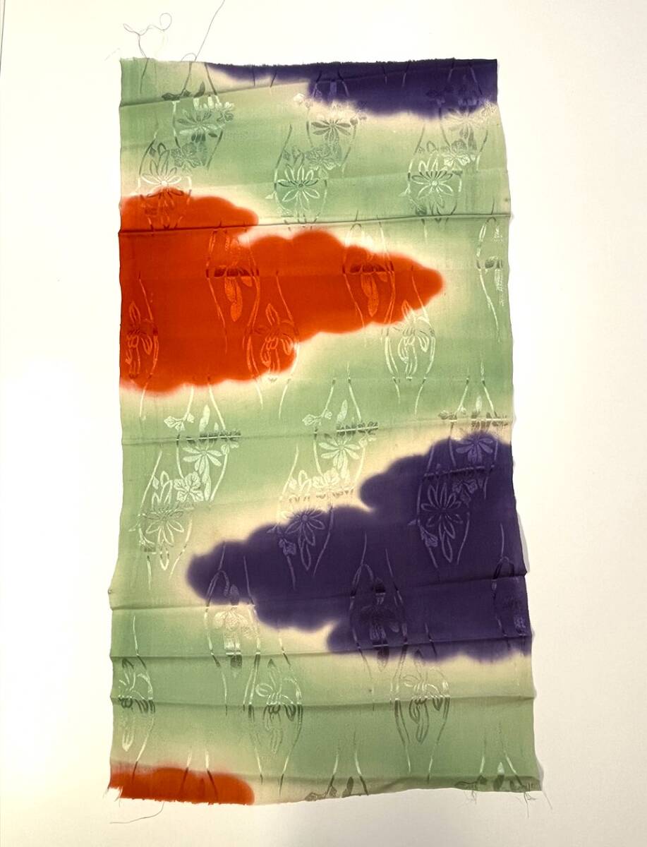 - 花とら●リサイクル端切れ 立涌 薄緑 紫 橙 ぼかし リメイク 素材 細工用 240505-19