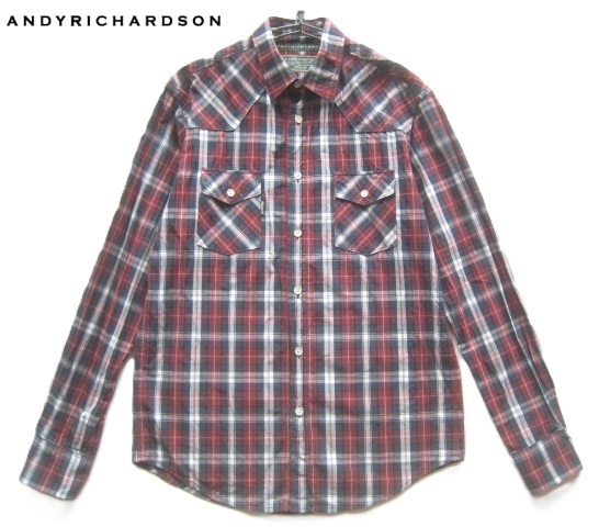 - 高級チュニジア製!!アンディリチャードソン ANDYRICHARDSON*チェック柄ウエスタンシャツ L 白×紺×赤×黒 イタリアブランド