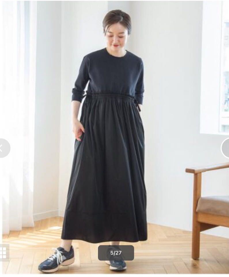 > 美品 イエナIENA ドッキング Iラインワンピース◆ロングマキシ丈ギャザースカート アローズドレステリアplageトゥモローブラックネイビー