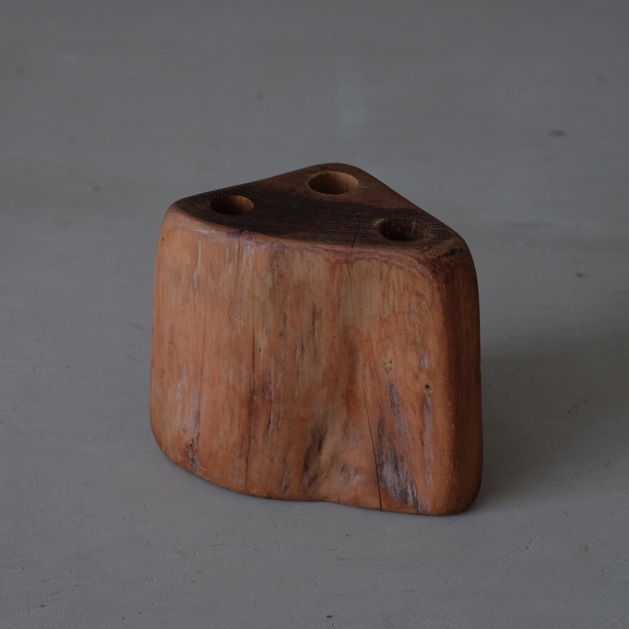 - 03132 三角柱の木のペン立て / 試験管立て 燭台 オブジェ 古家具 古道具 古民具 レトロ