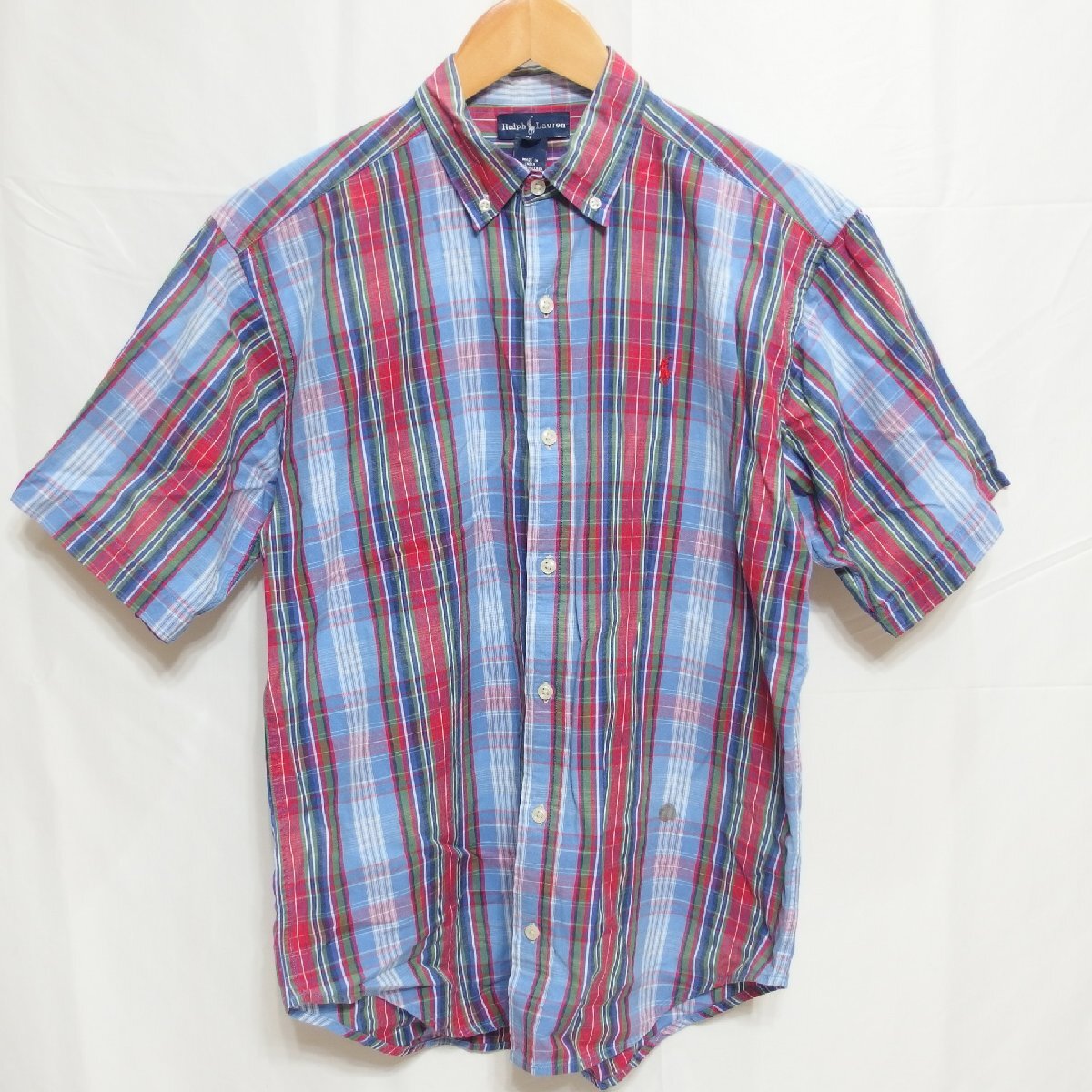 > POLO RALPH LAUREN◆ポロ・ラルフローレン 半袖 チェック柄 ボタンダウンシャツ(L )難有り◆USED