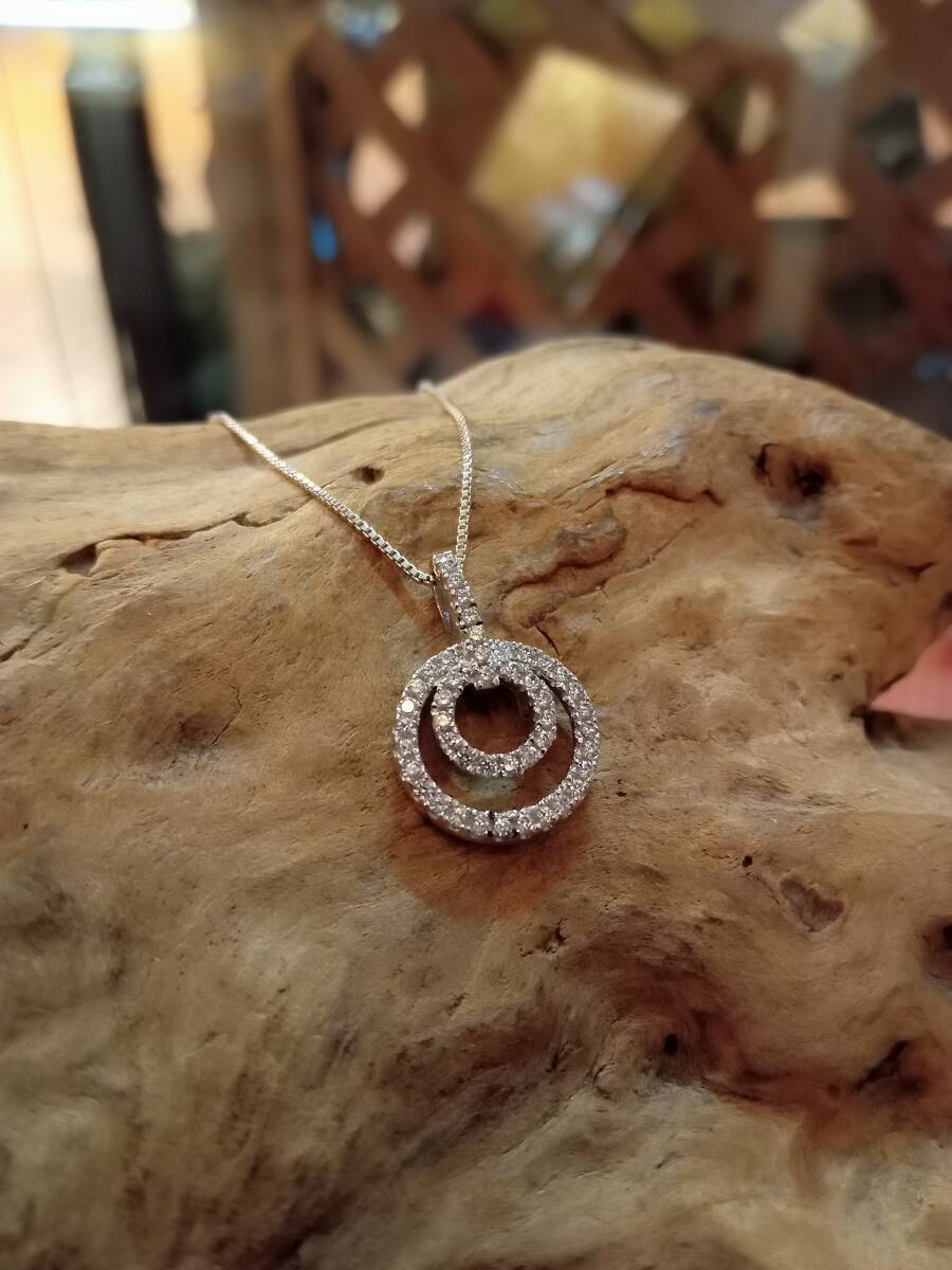 - シルバー925,ダブルサークル,ツインサークル,ジルコニア,パヴェ,ペンダント,ネックレス,レディース