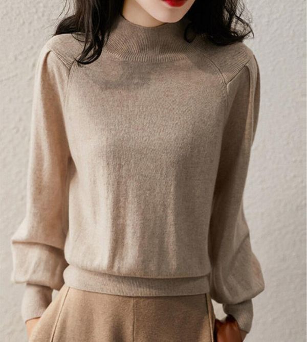 > 新入荷 / / エレガント おしゃれ ニットセーター 気質大人 20304050代 ハイネック カシュクール ニット トップス / 杏