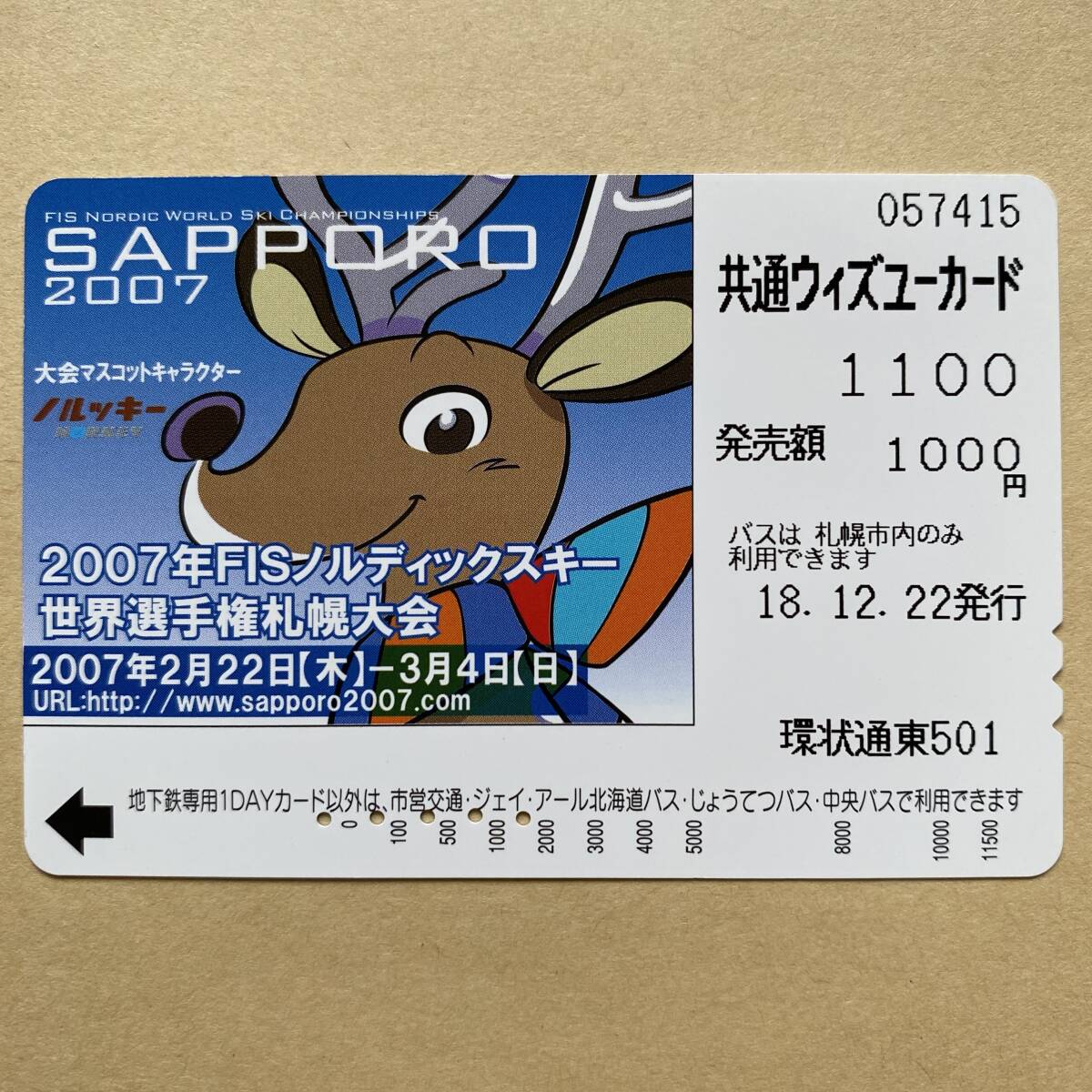 > 【使用済】 ウィズユーカード 札幌市交通局 2007年FISノルディックスキー 世界選手権札幌大会 大会マスコットキャラクター ノルッキー