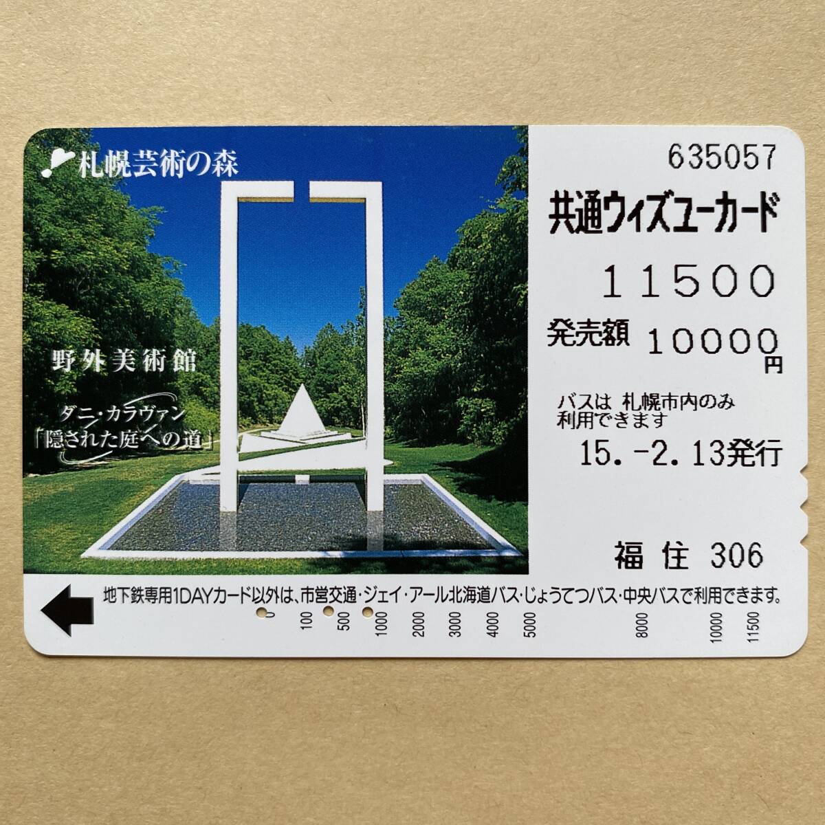 - 【使用済】 ウィズユーカード 札幌市交通局 札幌芸術の森 野外美術館 ダニ・カラヴァン 「隠された庭への道」