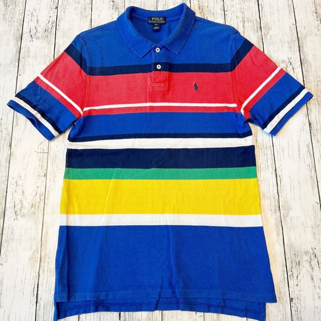 - POLO RALPH LAUREN ラルフローレン マルチカラー ボーダー ポニー 刺繍 半袖ポロシャツ sizeXL
