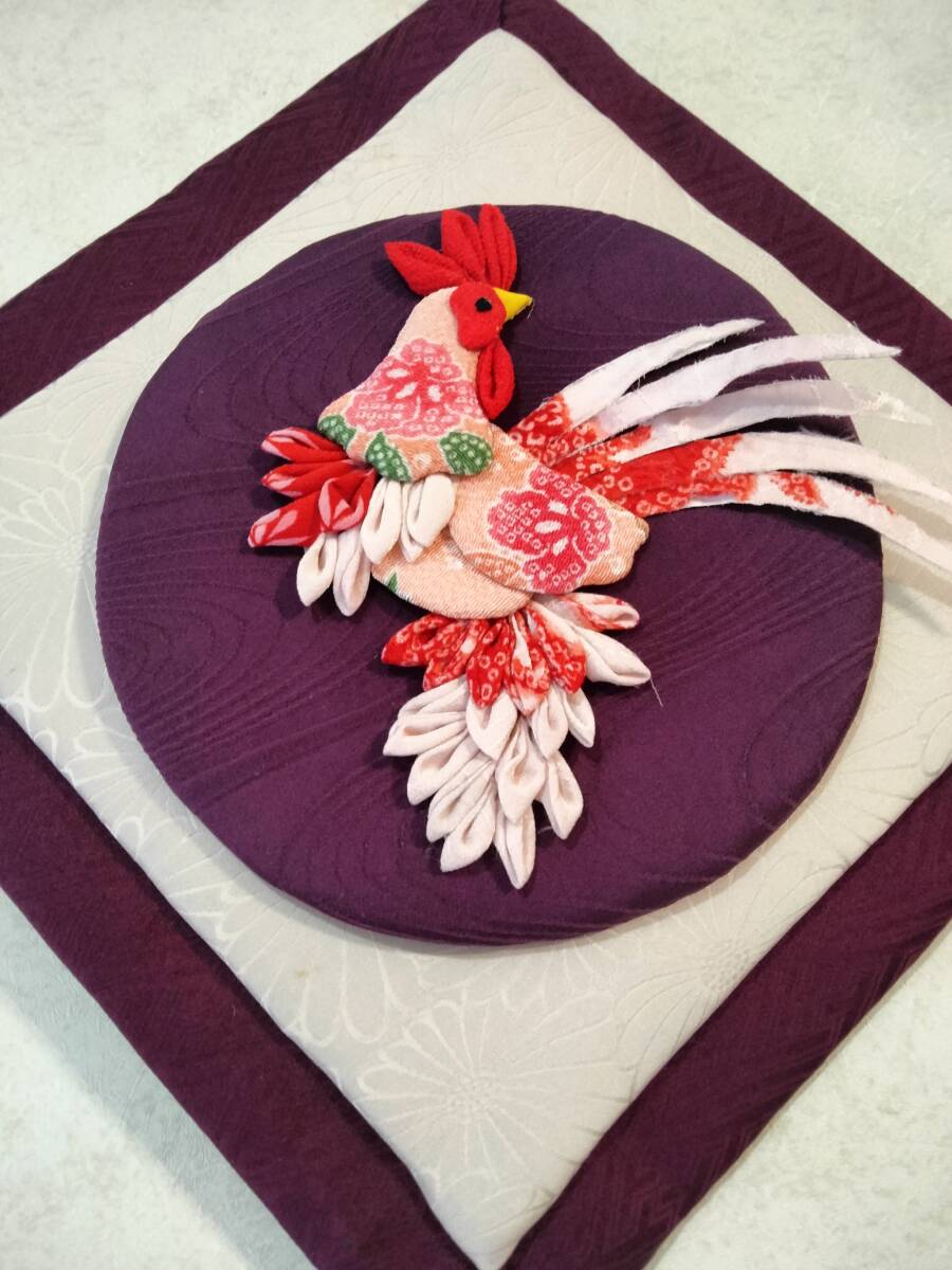 > ハンドメイド【着物リメイク】押絵 ニワトリ 干支 鳥 壁飾り ちりめん細工 鶏 酉 正月飾り 正月 つまみ細工 十二支 壁掛け