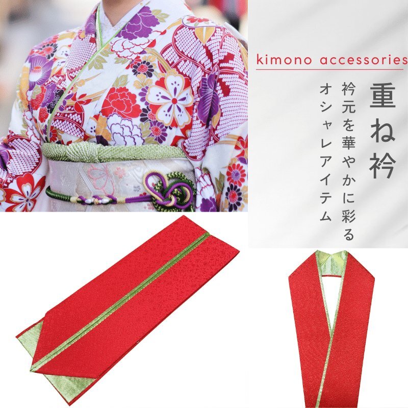 - 重ね襟 振袖 重ね衿 振袖用 朱赤系×金 伊達襟 伊達衿 リバーシブル シンプル 裏金 豪華 成人式 卒業式 袴 フォーマル 赤 朱 金 着物 和装