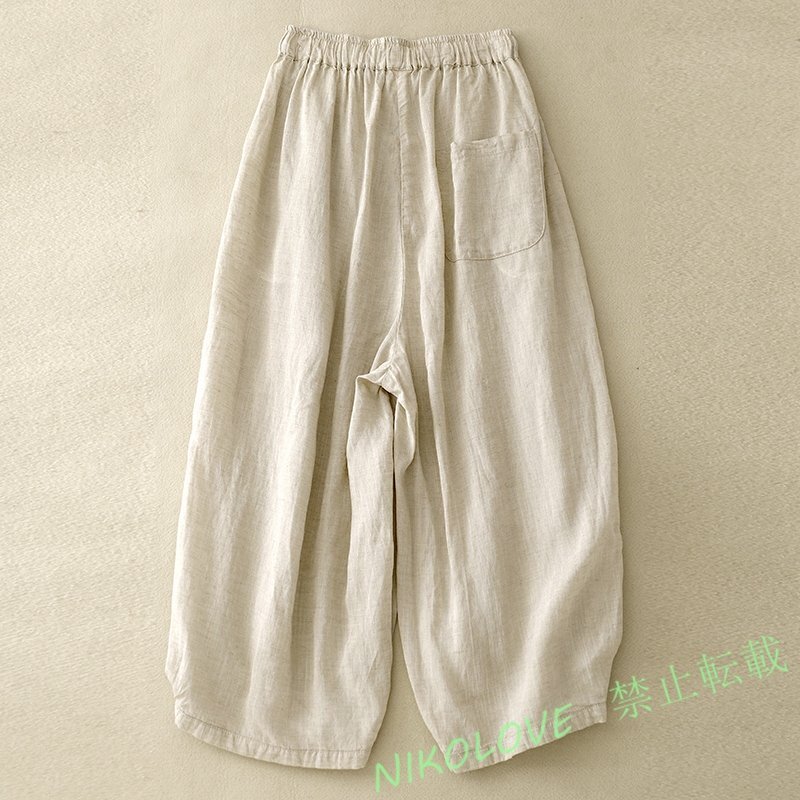 - 新品9分ワイドパンツ ゆとり カジュアル 無地 大根ズボン 薄い型 ワイドパンツ グリーン LE986