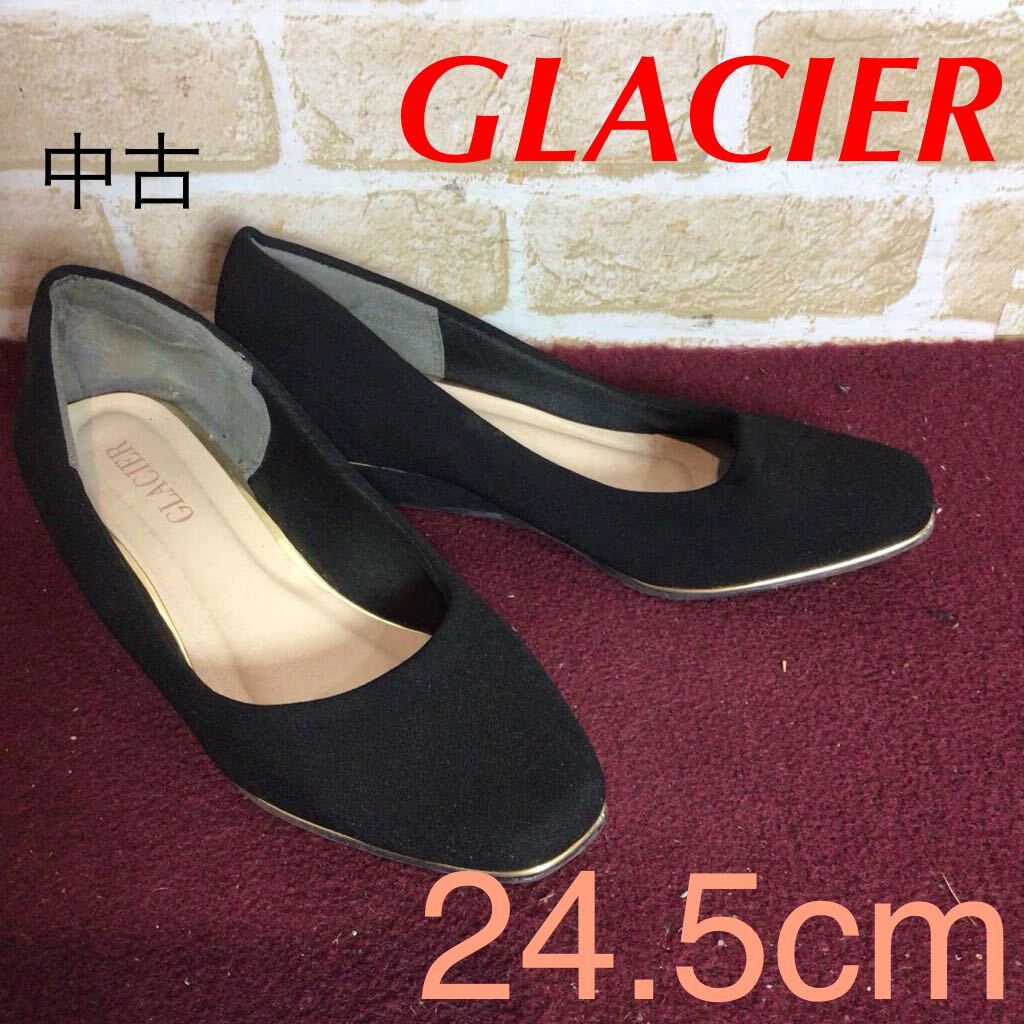 > 【売り切り!送料無料!】A-318 GLACIER!パンプス!黒!ウェッジソール!24.5cm!おしゃれ!冠婚葬祭!ローヒール!中古!