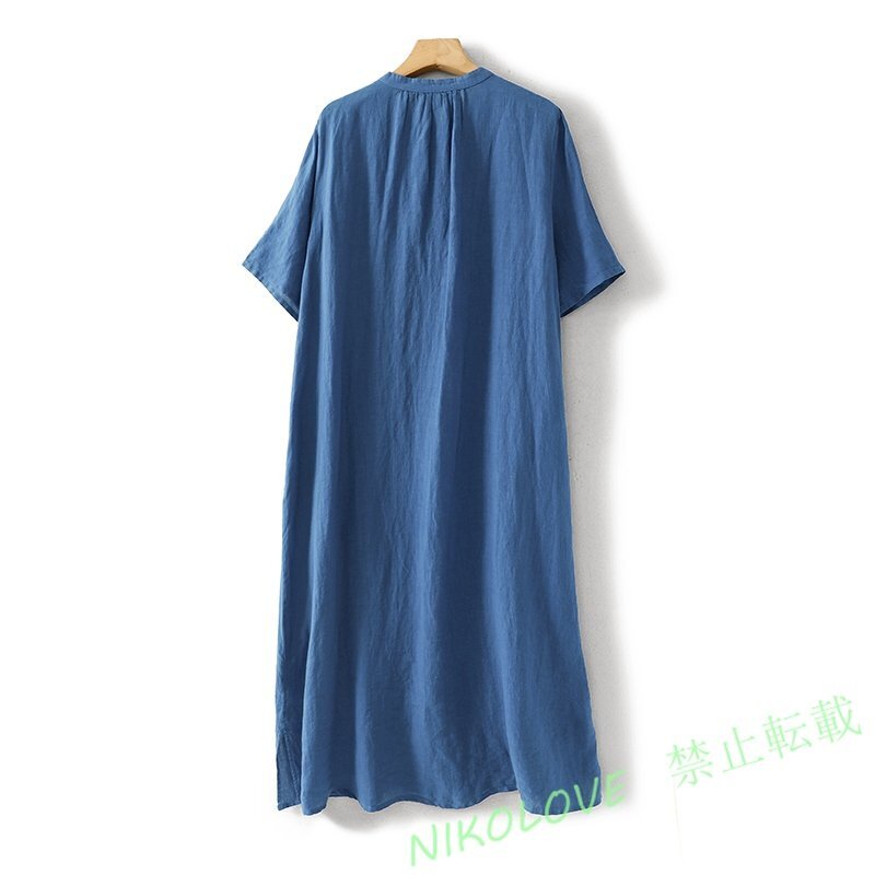- 新品カジュアル 体型カバー レディース じゅんしょく バックル半袖ロングワンピース M~2XL 青 LH370