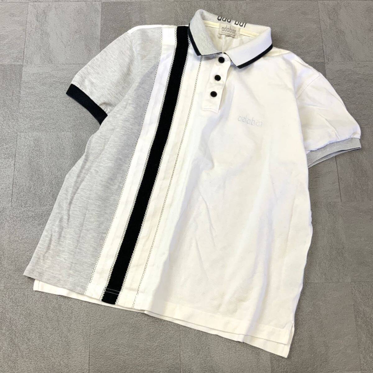 > adabat アダバット ストライプ 鹿の子 半袖 ポロシャツ レディース サイズ2 Mサイズ ホワイト グレー ブラック