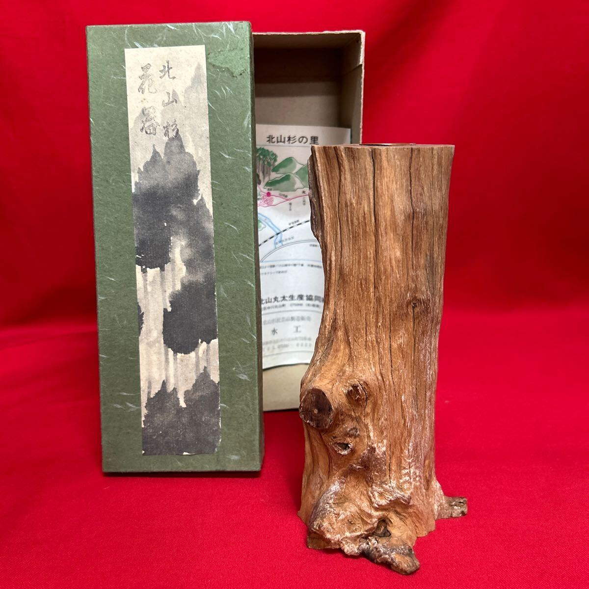☆美品☆ 京都 清水工芸 北山杉の里 梅の木 自然木 花瓶 高さ20cm 一輪挿し 花器 銅製落とし付き 木工芸 茶道具 インテリア 置物 (06086F