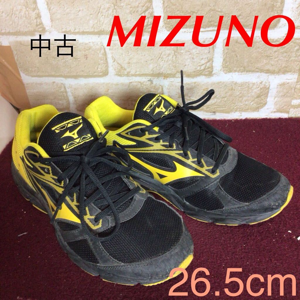 - 【売り切り!送料無料!】A-376 MIZUNO!ランニングシューズ!黄色!黒!26.5cm!ウォーキング!ランニング!トレーニング!普段ばき!中古!