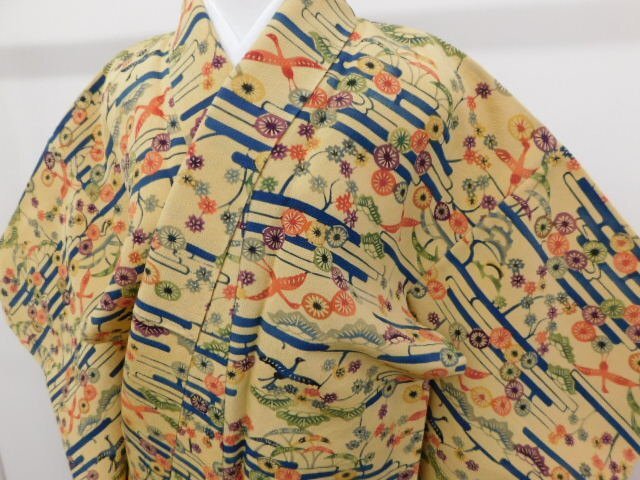 - 〔楽布特選〕P29660 鬼縮緬 型絵染め 小紋単衣 オークション t