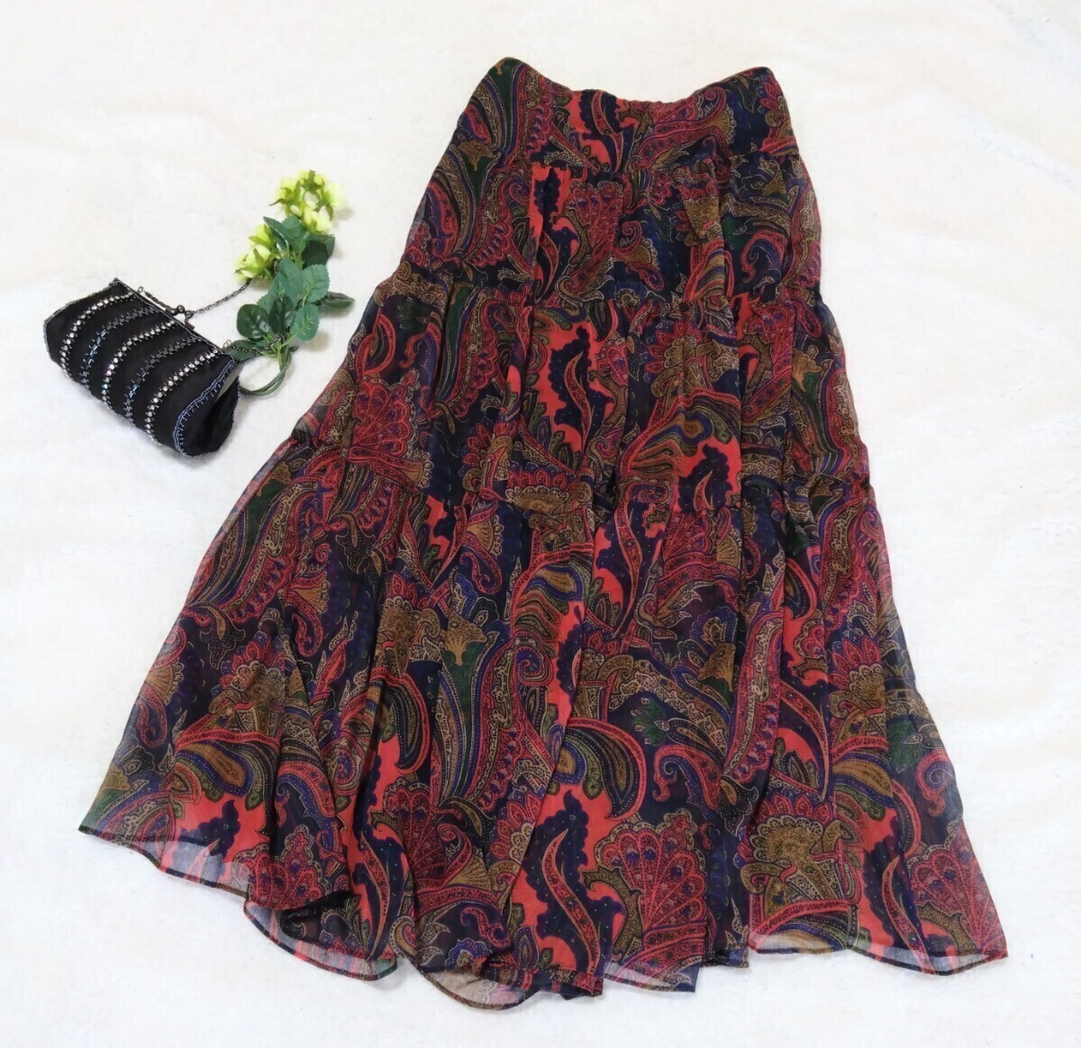 > 【ローレン ラルフ ローレン】ロングスカート マキシ丈 シフォン ペイズリー柄 花柄 サイズ表記00 150/66A
