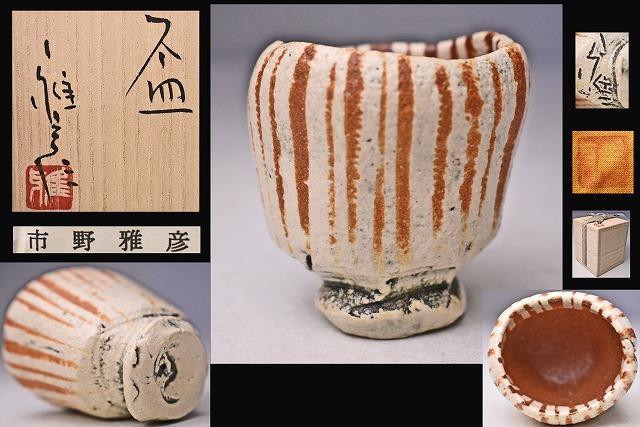 - 市野雅彦 ★ 線文ぐい呑 ★ 共箱共布栞 ★ 上作 ★ 今井政之 市野信水 師事 ★ 丹波焼 立杭焼 ★ 緋色キレイ
