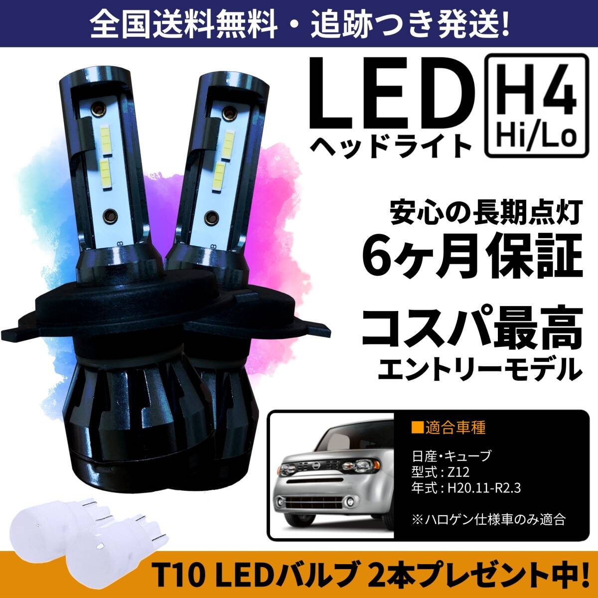 - 【送料無料】日産 キューブ Z12 LEDヘッドライト H4 Hi/Lo ホワイト 6000K 車検対応 保証付き