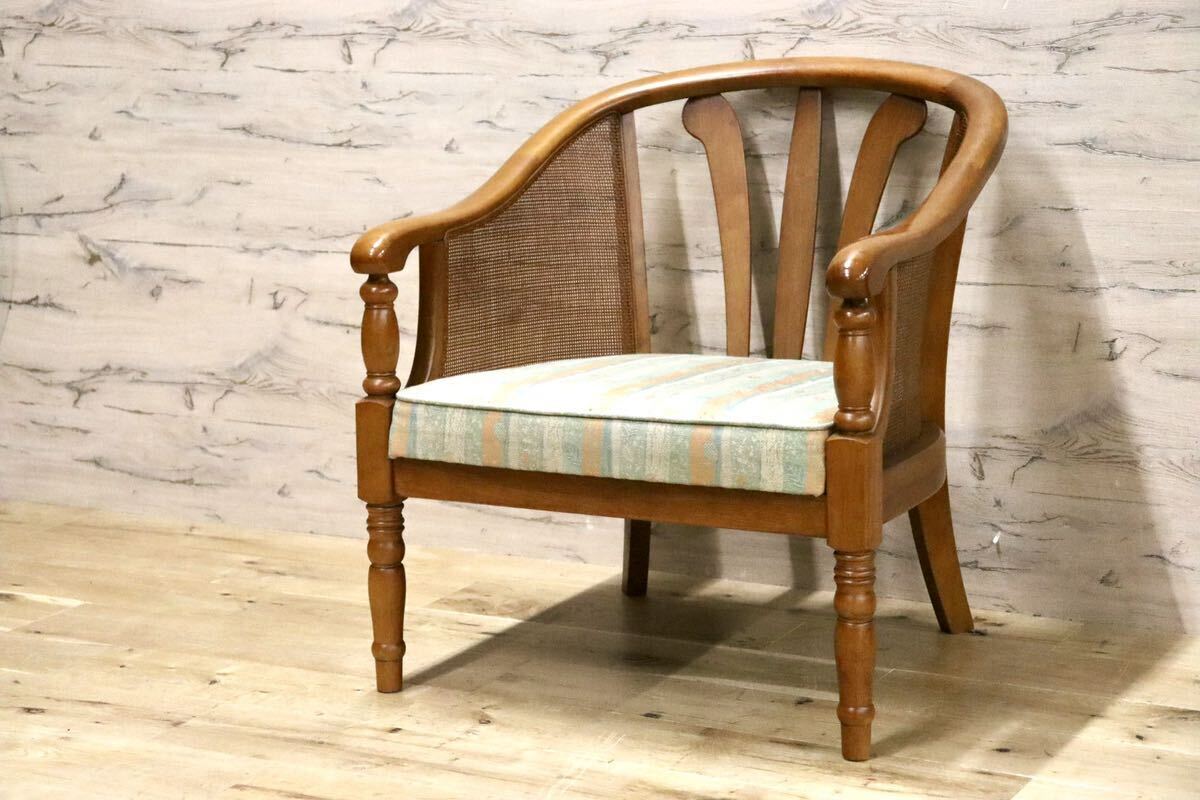 > GMHH106A○karimoku / カリモク アームチェア ラウンジチェア シングルソファ ラタン ファブリック 椅子 アンティーク 国産家具