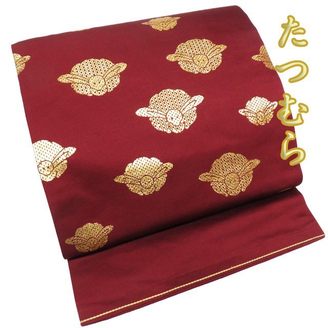 > 特選 名古屋帯 中古 リサイクル カジュアル 仕立て上がり たつむら 龍村美術織物 箔糸 竹屋町兎文 栗梅色 金 きもの北條 A1037-11
