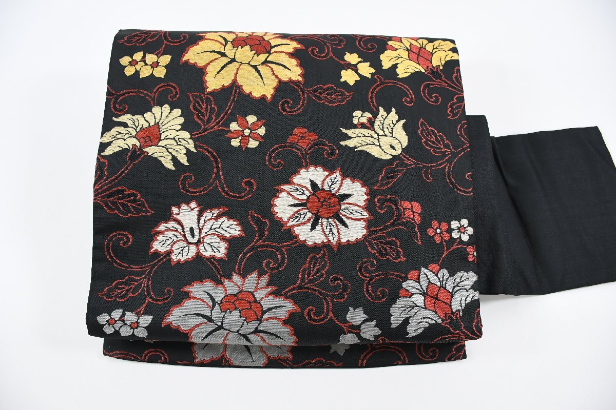 > 名古屋帯 アンティーク 花 秋草 帯丈332cm ★着物屋 ne-10655 桜庭呉服店