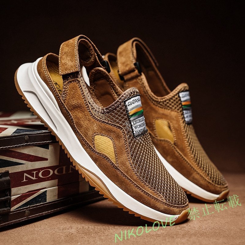- 新品スニーカー サンダル メンズ 紳士靴 カジュアル メッシュ通気 アウトドア キャンプシューズ 24cm~27.5cm ブラウン LD688