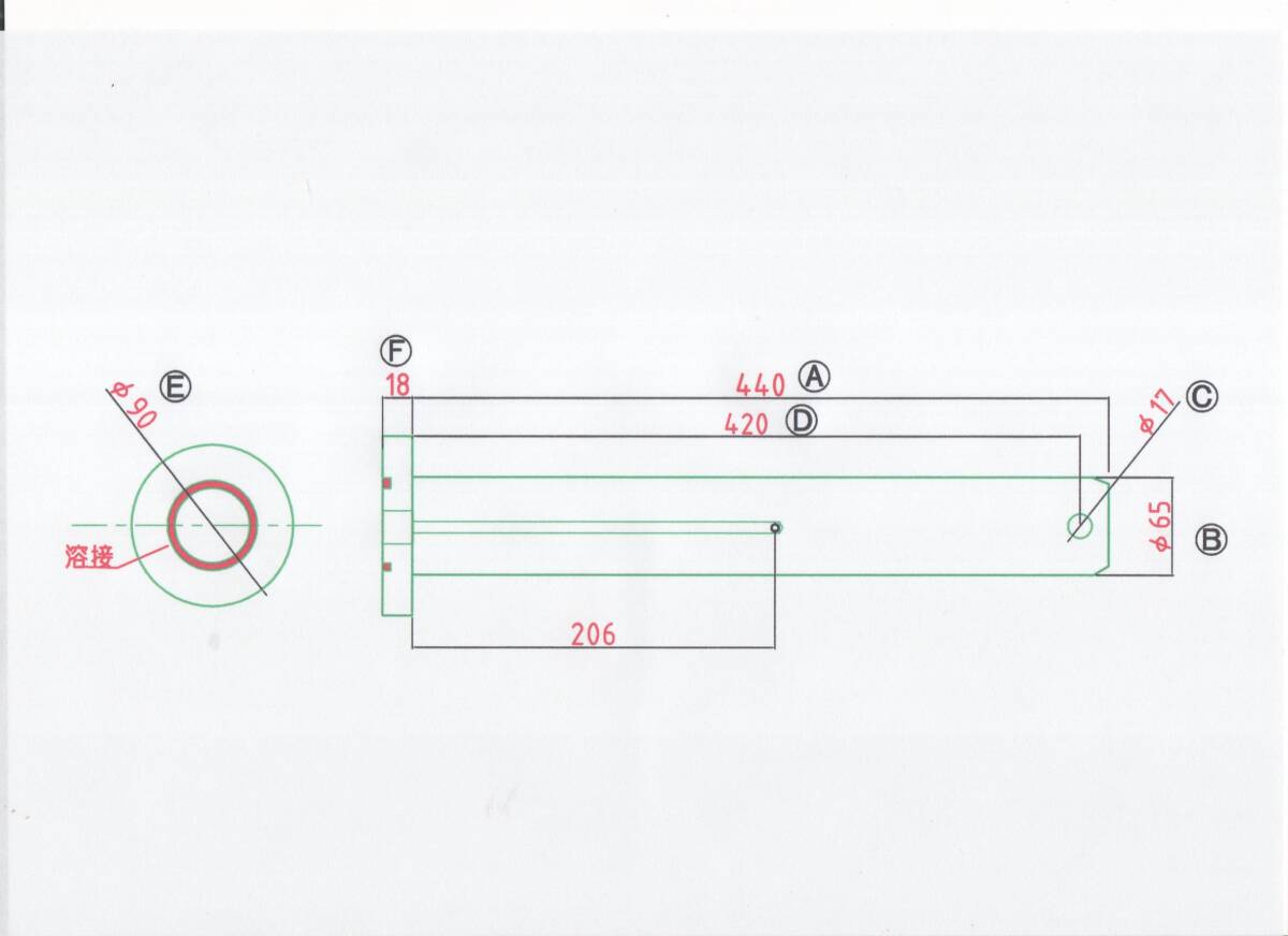 - NO 1804 Φ65用 溶接ツバ下440mm グリス穴付きバケットピン 1本