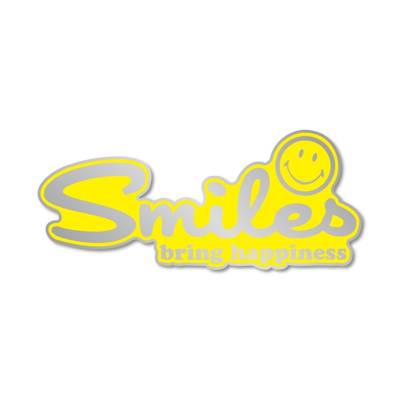 > (シルバー)ハッピー♪スマイル ステッカー 1枚 10cm イエロー アメリカン スクーター キャリーケース ことわざ 名言