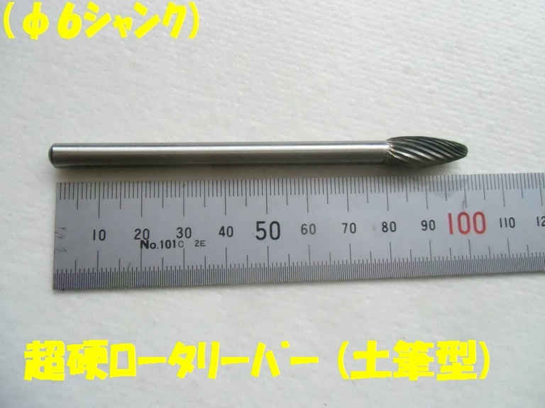 - 超硬ロータリーバー φ6シャンク 全長100mm 土筆タイプ