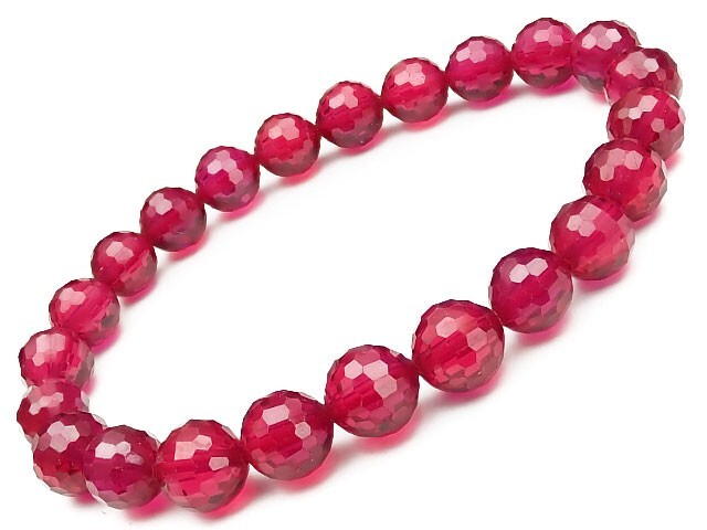- 合成ルビー 128面カット 丸玉ブレス 8mm【プレミアムカット】【1コ販売】 / 9-88 RU8BS-X