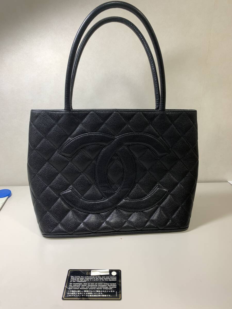 - 【質屋 尾張屋商店 東京】☆極美品☆ CANEL シャネル 復刻トート キャビアスキン 黒