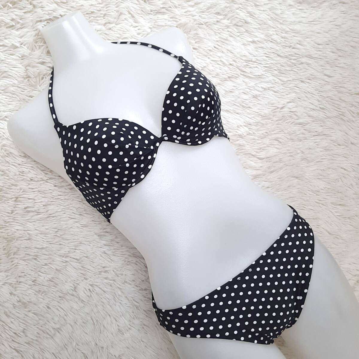 - 匿名配送★ドット柄 ホルターネック ワイヤービキニ 水着 黒 ブラック 9M D