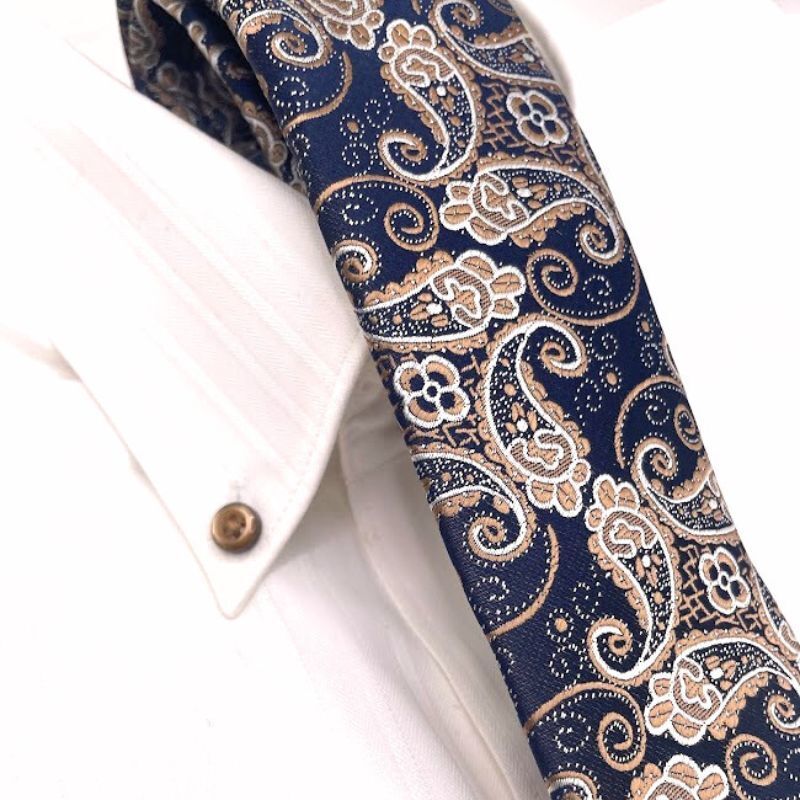 - メンズ ネクタイ ネイビー×ゴールド ペイズリー柄 和風 ビジネス おしゃれ カジュアル スリム【color 15】
