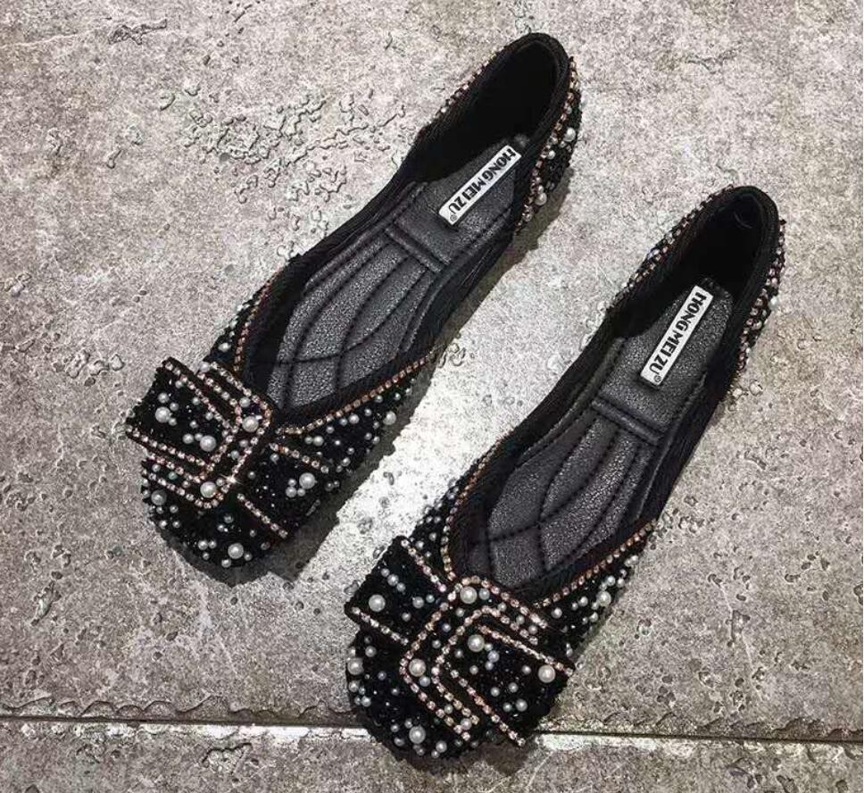 - サイズ選択可 / フラットシューズ ペタンコ パンプス スリッポン レディース ローファー キラキラ ビジュー 散歩シューズ / ブラック