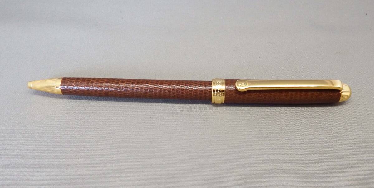 - EU-0437■TRUSSARDI トラサルディ ボールペン ノック式 針無し 革巻き 中古