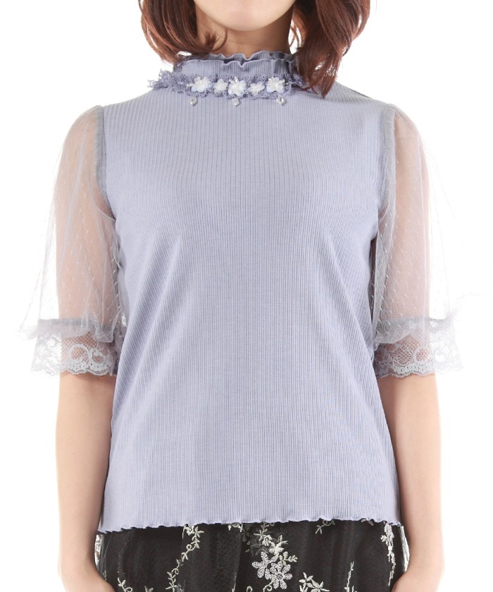> 299◇スタンドフリルビジュープルオーバー サックス axes femme アクシーズ ファム MR21X76