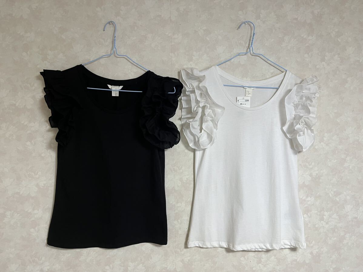 - 新品 H&M 袖フリルトップス XS ホワイトブラック セット / エイチアンドエム 白 シンプル