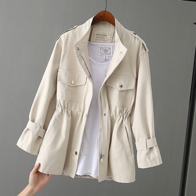 - トレンチコート レディース ミディアム丈ジャケット スプリングコート 春コート ゆったりアウター 秋服 アイボリー L
