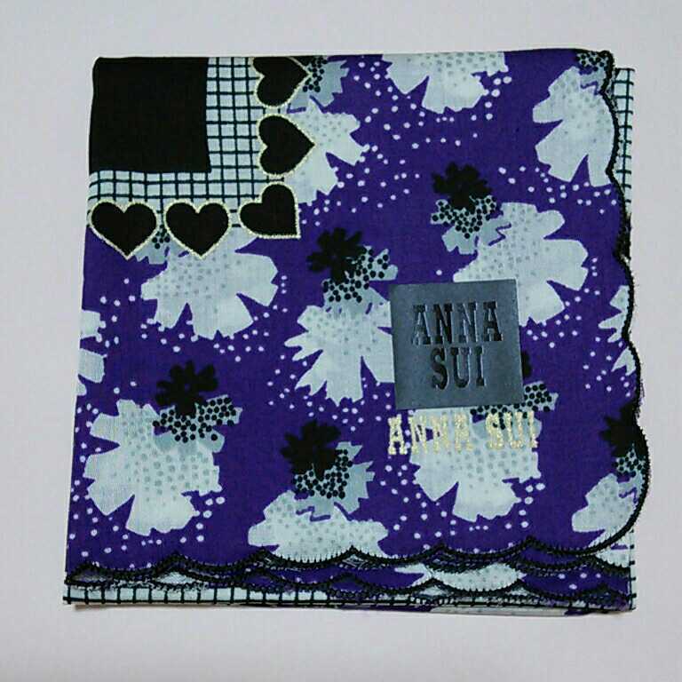 - ANNASUIアナスイ ハンカチ【 ハート柄 】ブラック×パーブル・ふち波形
