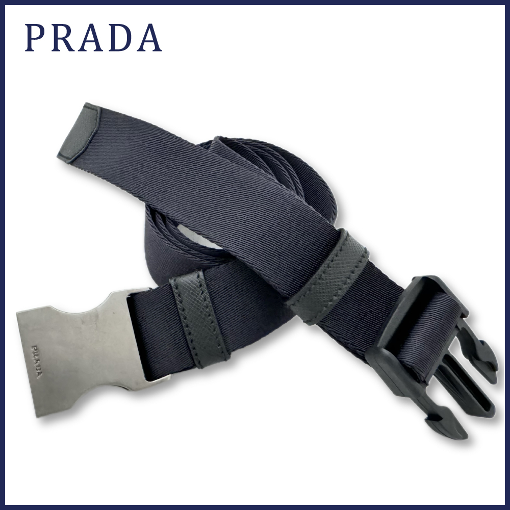 - 新品プラダPRADAメンズ ナイロンキャンバスベルト ネイビー#90#105★