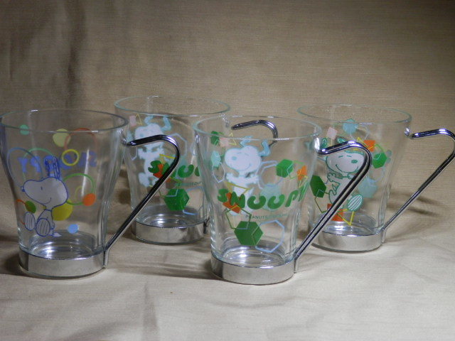 - スヌーピー カップ グラス&ハンドル 8x9.5cm 緑1個 置き場管理 内台上